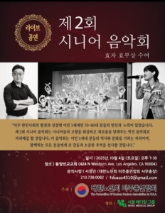 지난 주말, 동양선교교회에서는 대한노인회 미주총연합회 주최로 ‘시니어 음악회 효자·효부상 시상식’이 열렸다. 대한노인회는 미주에 계신 한인 시니어들을 위해 늘 따뜻한 마음으로 봉사하는 단체다. 어르신들의 복지와 행복한 노후를 위해 무료 급식이나 건강 세미나, 세대가 함께 어울리는 다양한 행사를 꾸준히 이어오고 있다.