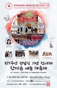 107주년 삼일절 기념 전야제와  **한미무용연합회 창립 23주년을 기념하는 「한마음 예술 대축제」**를 개최합니다.